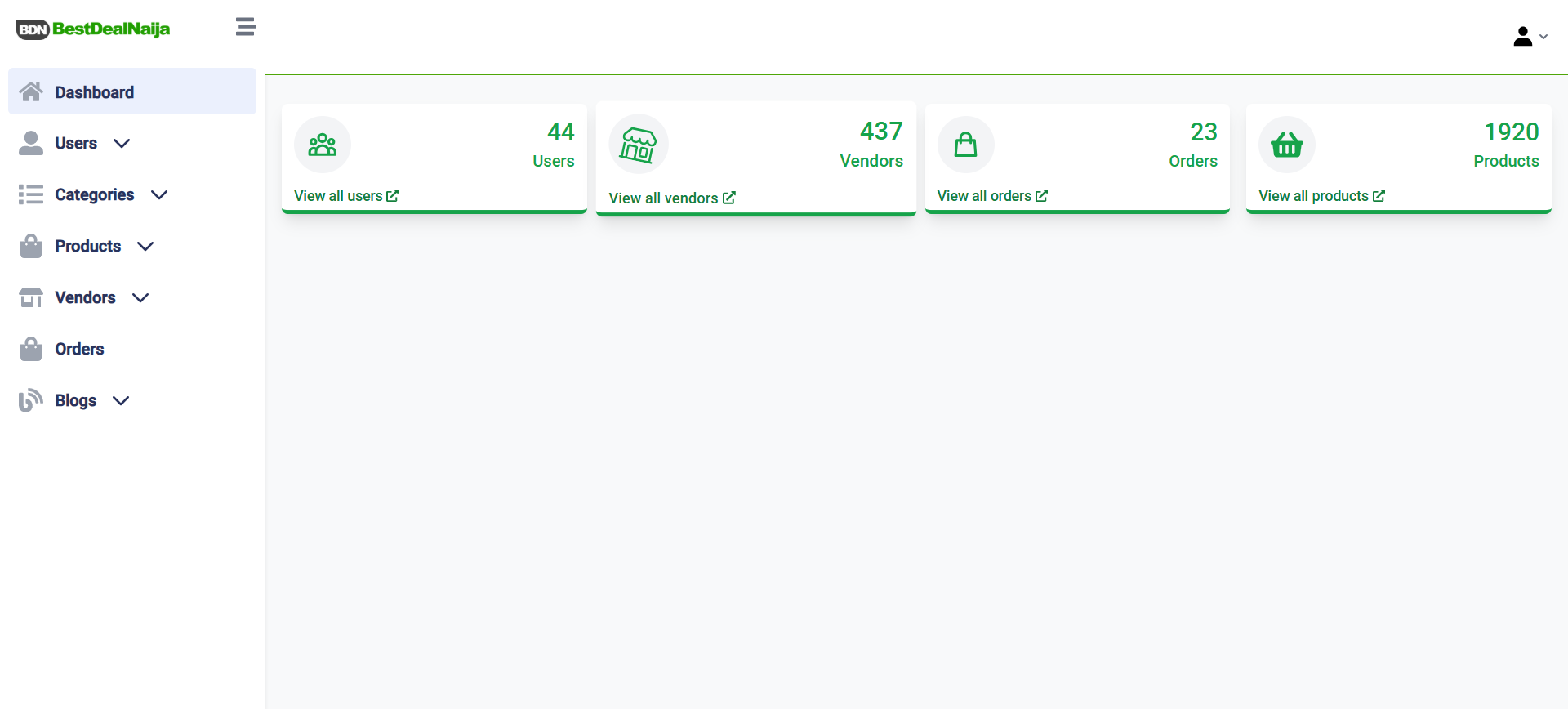Multi-vendor e-commerce platform. Built admin dashboard, user landing, and core modules like product, vendor, category management.